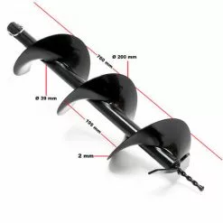 WILTEC Vis Sans Fin De Remplacement Pièce De Rechange 200mm Perceuse De Sol Tarière Creuse