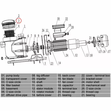 Pièce détachée: Pompe de Piscine WilTec No. 50919 / 50920 / 50921 joint torique 3