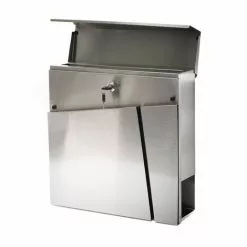 WILTEC Boite Lettres Moderne Design V19 Acier Inoxydable Compartiment Journaux Fixation Murale Poste