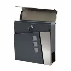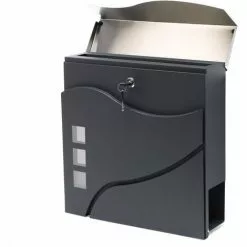 WILTEC Boite Lettres Moderne Design V24 Anthracite Fixation Murale Revêtue Poudre Porte Journal Inox