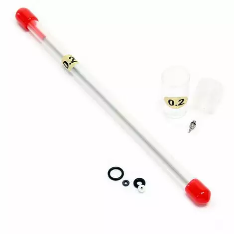 Le lot est composé d’une buse 0,2mm, d’une aiguille et d’un joint torique.