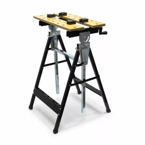L‘établi s‘ajuste individuellement pour vous permettre d‘effectuer des travaux de petite et grande envergure. Les possibilités de réglage concernent la hauteur, l‘inclinaison et la profondeur de l‘établi. Ce qui vous permet d‘enserrer différentes pièces à usiner. Par exemple, la hauteur de l’établi peut se situer entre 845 mm et 1155 mm. L‘inclinaison peut également être réglée aux valeurs suivantes : 0°, 15°, 30°, 45°, 60°, 75° et 90°. Par ailleurs, deux manivelles permettent de régler la distance existante entre les deux plaques de travail et qui va de 240 jusqu’à 325 mm.