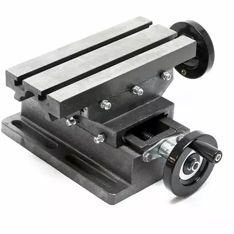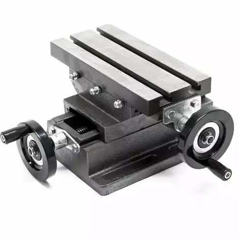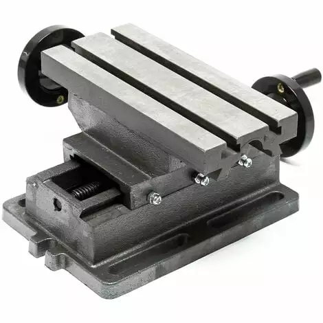 L’étau se compose de deux guidages, en somme de deux axes, qui s’entrecroisent et peuvent s’adapter à des angles différents, sachant que l’axe- X a une course de 100 mm et celle de l’axe -Y est de 80 mm. C’est au sein de ce domaine de travail que la pièce à usiner peut être placé dans n’importe quelle position, du moment que celle-ci n’empêche ou n’entrave en rien la mobilité des deux axes.