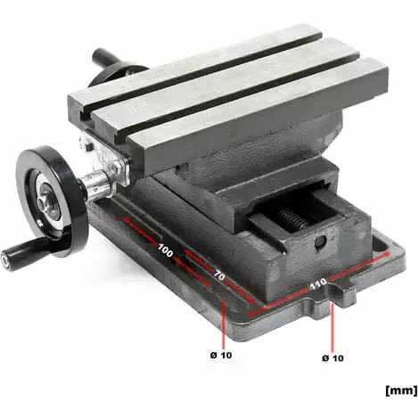 | Dimensions | Maße: 170 x 85 mm Verfahrweg X-Achse: 100 mm Verfahrweg Y-Achse: 80 mm convient pour rainure en T dimension nominale 10 mm (selon DIN-508) |