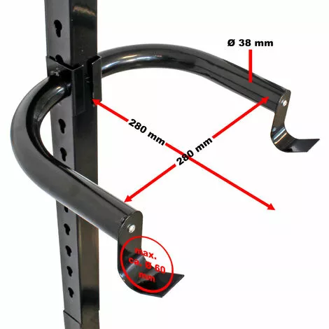 Deux bras de support superposés reposent sur la barre verticale. Chaque bras est équipé d’une surface d’appui, qui convient aux cadres de vélo ayant un diamètre allant jusqu’à 60mm. Étant donné que la hauteur des bras de support peut être réglée, le système d’accrochage convient à des vélos de différentes tailles. Pour cela, il suffit de lever ou d’abaisser les bras de maintien et de les fixer dans la position souhaitée.