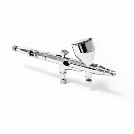 L’aérographe Modèle 180 est un appareil professionnel avec une fonction de régulation double pour le maquettiste ou modéliste, le graphiste ou celui qui fait du travail de retouche. L’aérographe est muni d’une buse de 0,3 mm et est approprié à tous les travaux de détail et de finition, comme les lignes fines, les reproductions techniques ou le travail sur masques. Tout à fait approprié pour des peintures aux pigments fins, les peintures à base d’eau ou pour lasures. L’aérographe du modèle 180 a une vis de régulation d’air au dessous du gobelet – c’est une particularité que n’ont que des aérographes de très haute gamme.