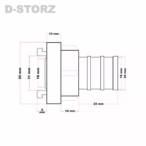 Vous recevrez un accouplement Storz avec long manchon (D/25mm).