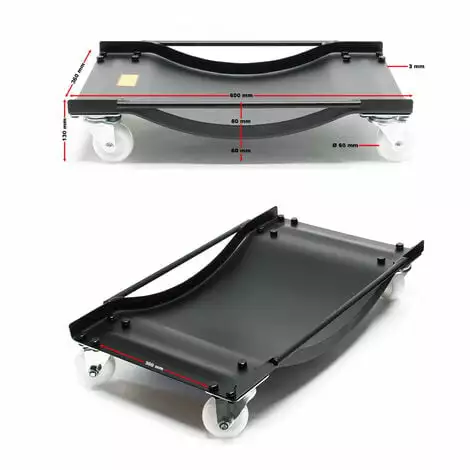 Vous recevrez deux aides à la manœuvre, chacune pouvant supporter une charge allant jusqu’à 450 kg. D‘une dimension de 60 x 36 x 13 cm, ils offrent suffisamment de place pour y ranger des pneus d‘une taille de 30 cm.