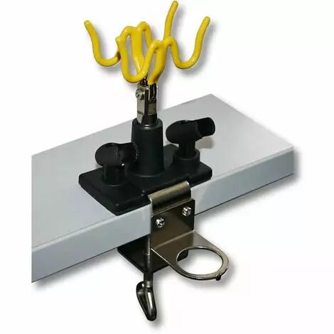 Un serre joint robuste garantit une fixation fiable et sûre sur une table ou un établi jusqu’à une épaisseur de 5 cm.