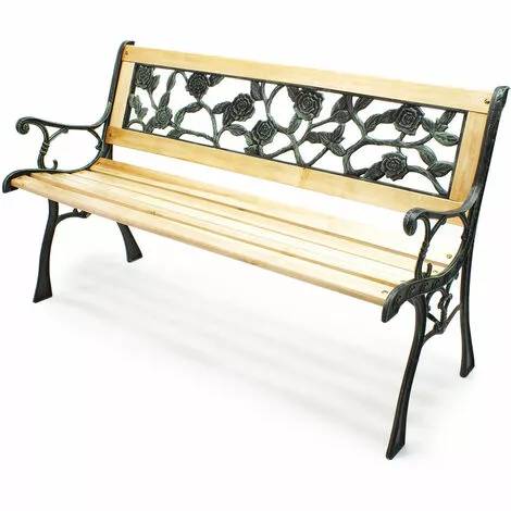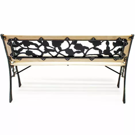 Banc de jardin Rosi en Bois et Fer de fonte Dossier avec Design Roses
