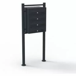 Boite aux lettres sur pieds 4 entrées Noire 4 cases Revêtement poudre