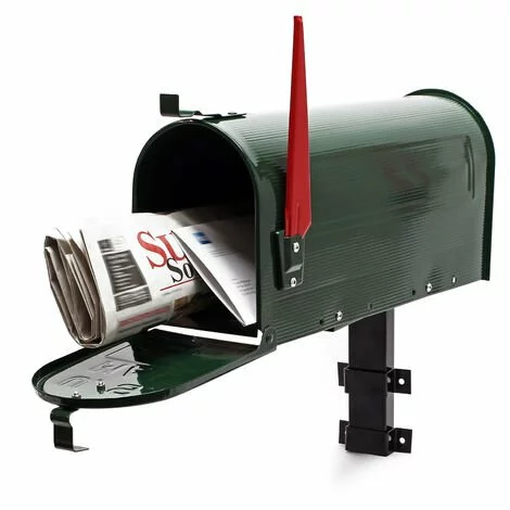 Une boîte postale idéale pour tous les fans des Etats-Unis et les nostalgiques des US dans un design typiquement américain. Le petit drapeau rouge ne doit absolument pas manquer au décor. Un drapeau qui vous indiquera si des lettres se trouvent à l’intérieur ou pas. Le clapet se ferme via un mécanisme typique, qui s’encliquète dès que le clapet sera fermé. La taille de la boite aux lettres permettra de garder votre courrier en toute sécurité, vos journaux attendront d’être récupérés bien au sec et à l’abri de la pluie. Grâce au pied de support en acier galvanisé inclus à la livraison, la boîte aux lettres pourra être installée sur place et sera prête pour la mise en service. Le matériel nécessaire pour le montage sera inclus à la livraison.