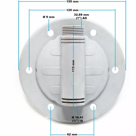La bride est dotée d’un filetage mâle d’un diamètre de 1 pouce (32,89 mm) et d’un filetage femelle d’un diamètre de ⅜ pouce (16,41 mm). La bride est une pièce de rechange qui convient aux réservoirs à vessie de 24-100 litres. Conçue en plastique, elle est stable et durable.