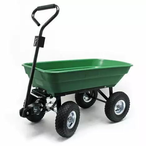 La zone de chargement fermée en plastique permet le transport d’objets de grande taille, comme par exemple, les bûches, les outils, les plantes ou bien les aliments alimentaires, mais aussi le sable et d’autres matériaux en vrac. Le châssis robuste en métal et résistant confine le chariot une haute capacité. Par ailleurs, l’essieu mobile et les quatre pneumatiques garantissent un transport simple et très sûr.