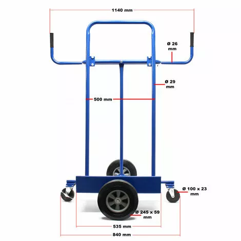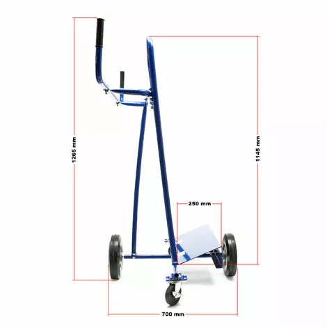La poignée est conçue de manière intelligente ; sa forme courbée vous permet de garder une distance entre vos mains et les plaques à transporter. Grâce à la poignée, vous pouvez déplacer les panneaux exactement à l’endroit où son usage est nécessité et vous permet également de guider le chariot chargé en toute sécurité. La capacité de charge est de 340 kg.
