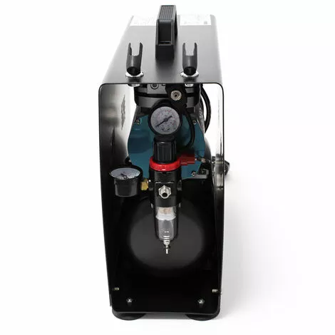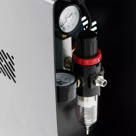 La solution intelligente: l’appareil idéal et très perfomant pour tous les travaux de pulvérisation que ce soit pour débutants ou pour professionnels, à utiliser dans le modélisme, la céramique, la poterie, la cosmétique, les salons de manucure, les casques, les reproductions techniques, le tanning, le tatouage, le textile, les studios Nail-Art, les travaux de peinture à eau, ou pour simple pulvérisation. De poids léger et facile à transporter. Très silencieux avec 47 décibels seulement. Le compresseur est totalement automatique et pratiquement sans vibrations. Il fonctionne sans huile et donc sans air pollué. Avec filtre à eau, véritable réducteur d’air comprimé et manomètre.