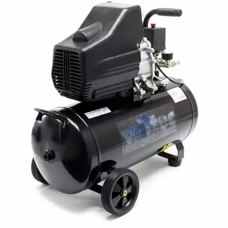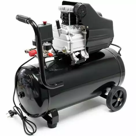 Le combiné qui rassemble une lubrification à l’huile, un moteur puissant et un volume de réservoir d’air comprimé de 50 litres, permet un travail rapide et ininterrompu. Bien que ce compresseur d’air ne soit pas adapté aux travaux de peinture en raison de l’utilisation de l’huile, il reste résistant à l’usure et peut être utilisé sans problèmes sous de fortes charges. La pression peut être réduite à 2,7 bars (40 psi) ou 6,2 bars (90 psi) selon les besoins. Grâce à la poignée pratique ainsi que les roues qui sont fixées sous le compresseur, celui-ci jouit par conséquent d’une haute flexibilité et peut être déplacé rapidement et facilement vers le lieu d’utilisation.