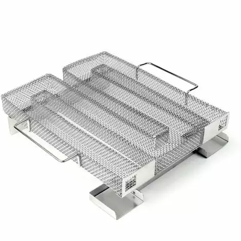 Un générateur de fumée froide pour fumer facilement à froid de la viande, du poisson, du fromage et les légumes ou bien d’autres aliments qui sont plus délicieux une fois fumés. Sous l’effet d’une basse température, vous pouvez obtenir un très bon résultat, de sorte que les aliments puissent fumer de manière constante et uniforme. Le générateur de fumée froide en acier chromé de haute qualité est muni de 4 chambres de combustion, ce qui permet d’atteindre une durée de préchauffage allant jusqu’à 8 heures. La durée dépend essentiellement de la consistance du bois de fumée.