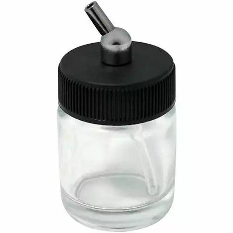 Gobelet à peinture en verre avec couvercle et tube plongeur pour presque tous les modèles d’aérographes courants. Il convient entre autre à notre aérographe Wiltec double action Type 128 (WilTecArt. 34128).