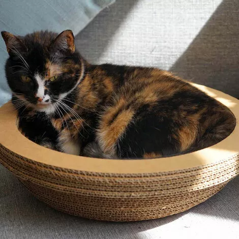 Faites plaisir à votre petit félin et offrez-lui un territoire propre à lui grâce à ce meuble griffoir. En effet, il ne s’agit pas seulement de carton, mais d’une surface généreuse à gratter. Les surfaces à gratter sont reliées par de la colle de farine, qui est inoffensive pour les hommes et les animaux. Par ailleurs, son design et le matériau donnent une note chaleureuse et le laisse s’intégrer au décor ambiant.