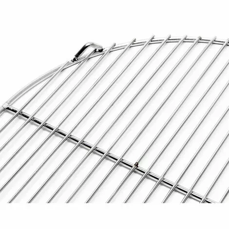 La grille de barbecue ronde et massive a un diamètre de 55 cm, Matériau : acier inoxydable, sans rouille, avec surface polie. La grande surface vous permet la préparation de plusieurs mets à la fois.