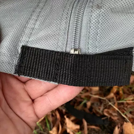| Application / Information / Caractéristiques | Eingesäumter Gummizug Zwei Reißverschlüsse Verstärkte Ecken Oberseite: 3 Lagen, 160g/m² Seiten: 1 Lage, 100g/m² |