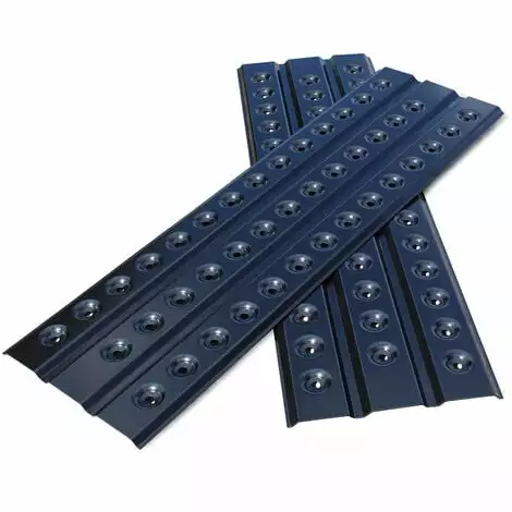 Les plaques sont en aluminium laqué résistant et se distinguent par leur résistance à la flexion et une stabilité particulières à cause de leur forme nervurée. D’une longueur de 150 cm d’une épaisseur de 4 mm, la surface d’accès de 45 cm est assez large pour empêcher un dérapage vers le côté.