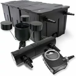 Une pompe de bassins robuste économique alimente tout le système avec suffisamment d’eau et le tout pour une consommation d’ènergie faible de 70W pour 10000l/h.