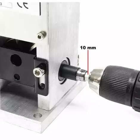 La machine à dénuder s’actionne via une poignée. Cependant, cette poignée peut être retirée si les travaux nécessitent un usage de la machine via une perceuse électrique. En outre, l’appareil est équipé de trous pré-percés au niveau du support, qui vous facilitent son montage sur un établi ou surface de travail.