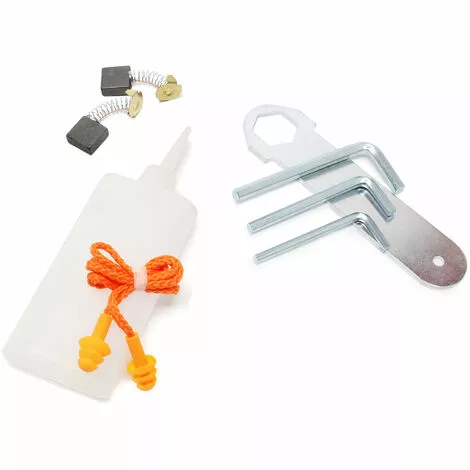 En plus du marteau, vous recevez deux burins, une clé hexagonale, deux douilles, un balai à charbon et un flacon d’huile (huile pour mécanique de précision).