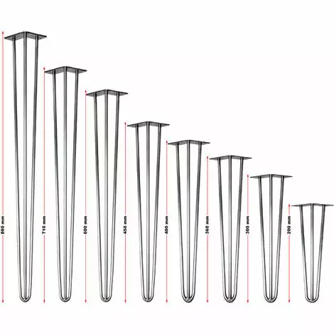 Avec ces beaux pieds de table en acier massif dans un design classique Hairpin, vous pouvez réaliser votre propre table faite maison.