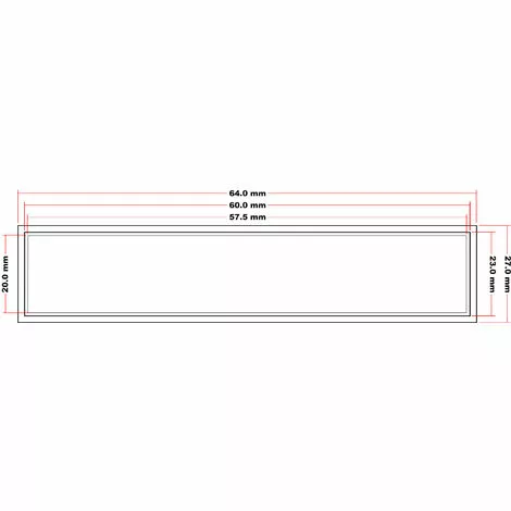 | Dimensions | Dimensions hors tout (extérieur) : 64 x 27 mm Dimensions de percage / sur la boîte aux lettres: 60 x 23 mm Convient pour un badge nominatif: 57,5 x 20 mm |