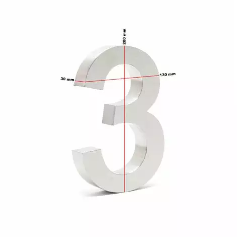 Plaque Numéro Maison 20cm Chiffre “3” Design 3D Acier inoxydable