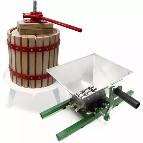 Le kit comprend un fouloir de 7l et un pressoir à fruits de 6l. Certains fruits et légumes sont trop grossiers et ne peuvent pas être facilement traités. Le broyeur vous aidera donc à obtenir facilement un moût de fruits ou légumes, que vous pouvez donc par la suite acheminer jusqu’au pressoir inclus à la livraison.