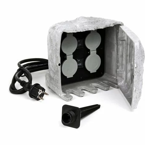 Le boîtier bien façonné et à l’aspect de pierre, s’insérant dans votre jardin sans se faire remarquer, n’est pas perçu directement en tant que prise. Grâce au standard IP44, cette prise résiste facilement à la pluie et aux éclaboussures et ne nécessite pas d’être démontée après utilisation.