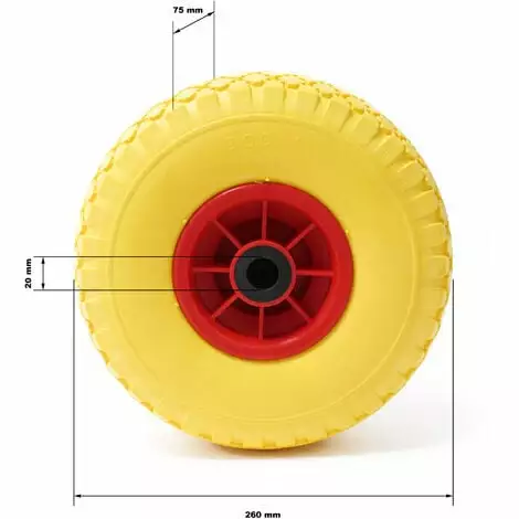 Vous recevrez une roue en polyuréthane 3.00-4, increvable, avec Axe, jante en tôle de plastique prémontée.