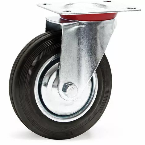 Roulette fixe 200 mm avec Roue caoutchouc Jante métal Transport meuble