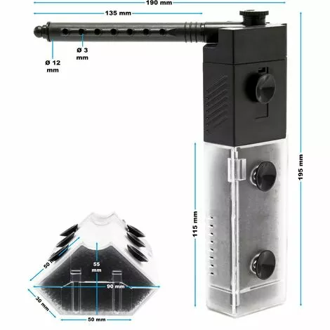 Le filtre d’aquarium s’adapte parfaitement pour l’utilisation dans les aquariums Nano ou bien dans les aquariums avec un volume d’eau de jusqu’à 60 litres.