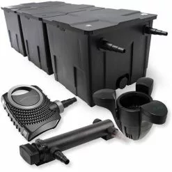 Ce kit de filtration de bassins assemblé tout spécialement pour les grands et moyens bassins jusqu’à 90000l vous offre les accessoires pour votre bassin.
