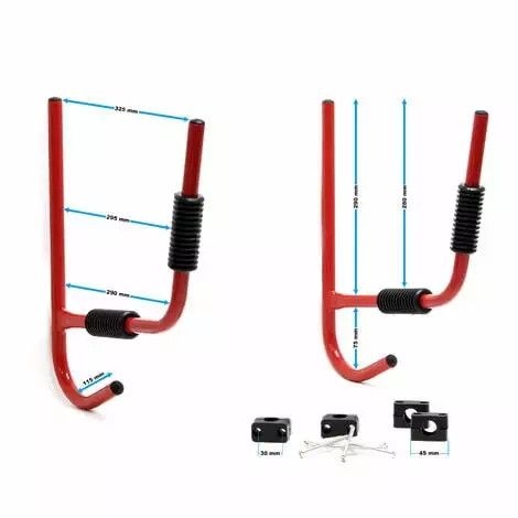 Avec une capacité de charge allant jusqu’à 80 kg et un châssis stable en acier revêtu par poudre, le support mural offre non seulement de la place pour des kayaks monoplaces, mais aussi pour des kayaks biplaces qui peuvent y être facilement rangés. Les crochets inférieurs de 12 cm de long permettent également de suspendre des accessoires tels que des pagaies et des casques.
