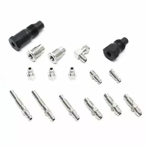Adaptateur pour le filetage pour bougie de préchauffage: M10x1,0x68 mm/M10x1,25×54 mm/M10x1,25×68 mm/ M12x1,25×45 mm. Tous les adaptateurs sont munis d’un accouplement à changement rapide.