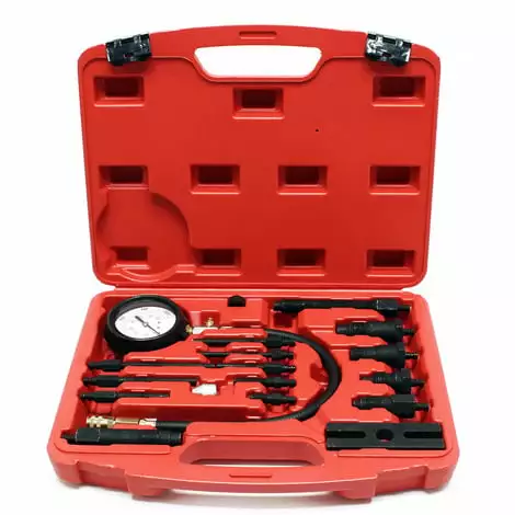 Ce set d’outils sert à tester la compression de moteurs diesel . Toutes fuites au niveau des segments de piston ou des soupapes seront rapidement détectées.