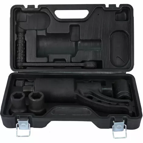 Étant donné que l’amplificateur de couple peut desserrer des assemblages vissés avec un couple allant jusqu’à 4800 Nm, il est parfaitement adapté aux travaux de réparation ou au changement de roues sur les camions. En outre, il peut également être utilisé sur d’autres véhicules lourds ou sur des véhicules agricoles. L’amplificateur de couple est doté d’un rapport de transmission de 1:64 et est également équipé d’un porte-outil de 25 x 25 mm. En plus de l’amplificateur, vous recevez également trois douilles de 24 mm, 27 mm et 30 mm ainsi qu’une manivelle. La totalité des outils se trouve bien emballé dans une mallette pratique, ce qui vous permet de garder l’amplificateur de couple à tout moment à portée de la main.