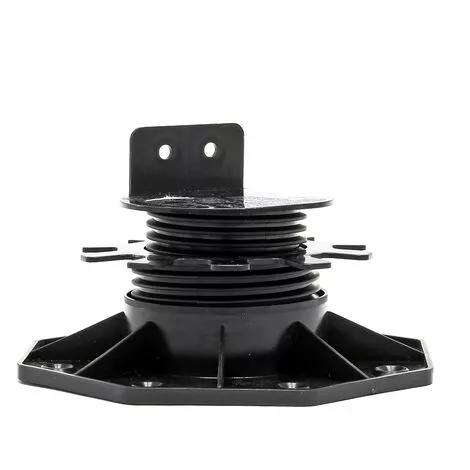 Les pieds réglables sont en plastique polypropylène robuste, parfaitement approprié à un usage à l’extérieur. Les pieds se caractérisent par une capacité de charge particulièrement importante, de jusqu’à 2700 kg. Ce matériau durable est en outre résistant aux intempéries et insensible au gel, à la chaleur, à la neige et à la pluie. Par ailleurs, si les planches et les lames se posent sur les lambourdes, l’eau peu mieux s’écouler sur la surface de la terrasse.